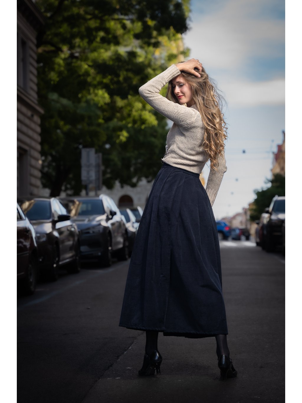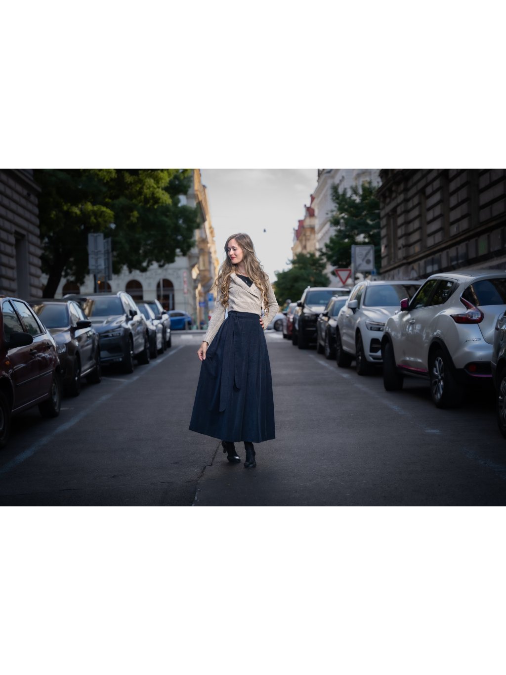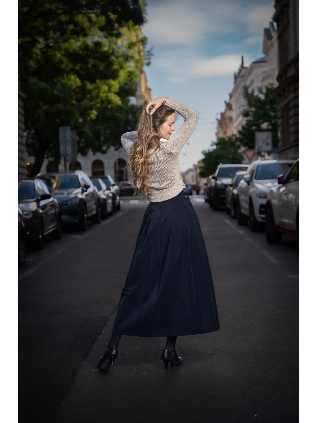 Ponořte se do elegance s naší manšestrovou dlouhou sukní v barvě navy, která je stvořena pro pohodlí a styl v chladnějších dnech.