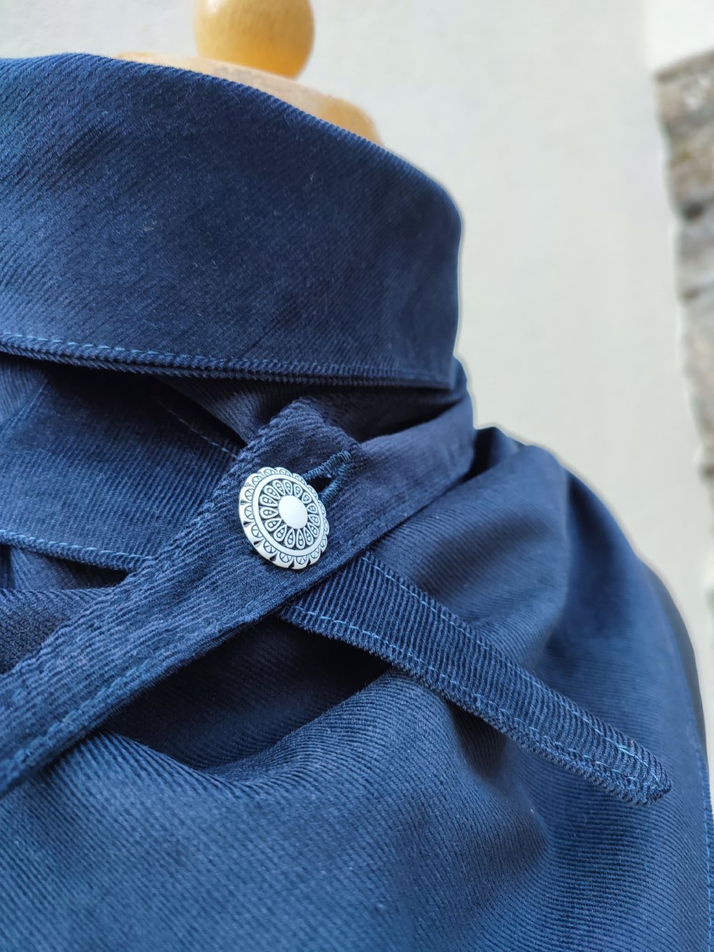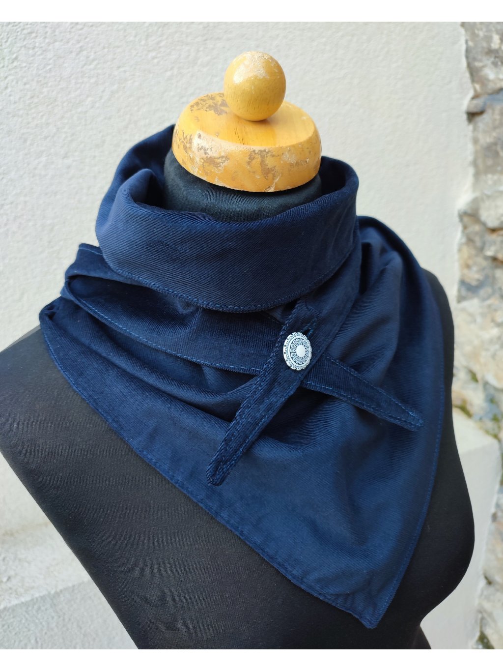 Jemný nákrčník, ušitý z dvojitého, heboučkého manšestru v odstínu navy.