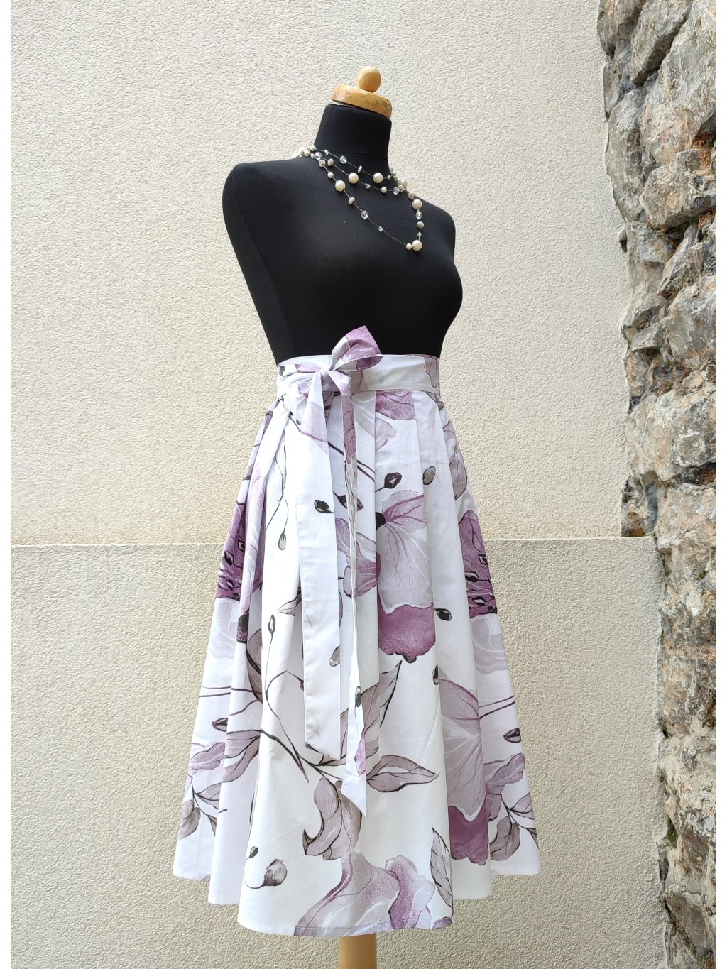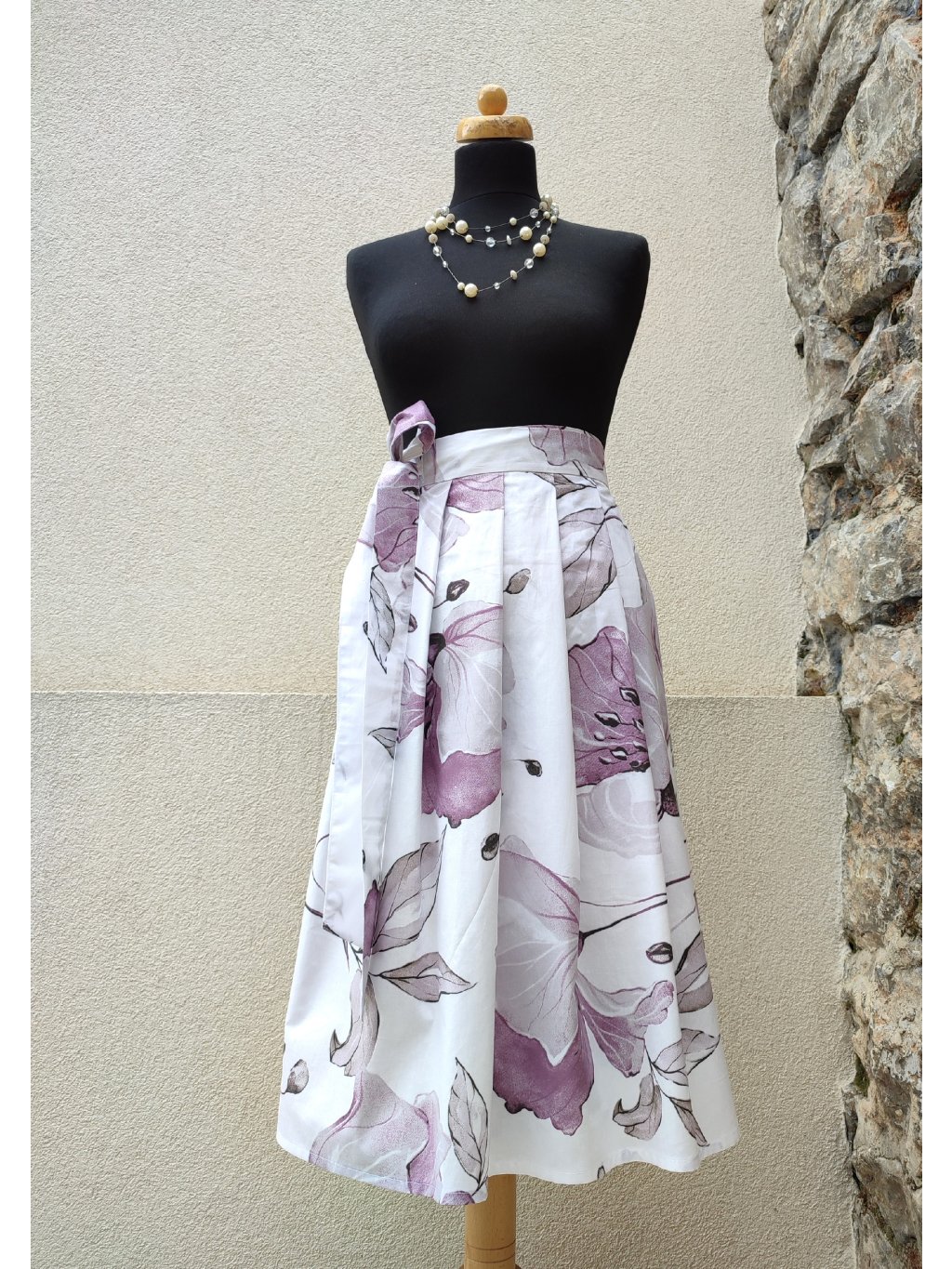 Zavinovací sukénka ušitá ze 100% bavlny s pěkným potiskem květů.