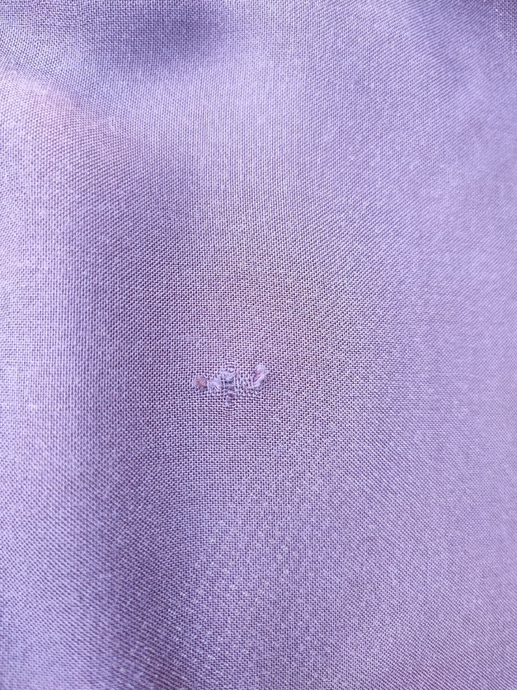 Po ušití jsem bohužel v látce objevila kaz. Není až tak velký a je naštěstí dobře schovaný v záhybu dolní vrstvy, ale je tam.