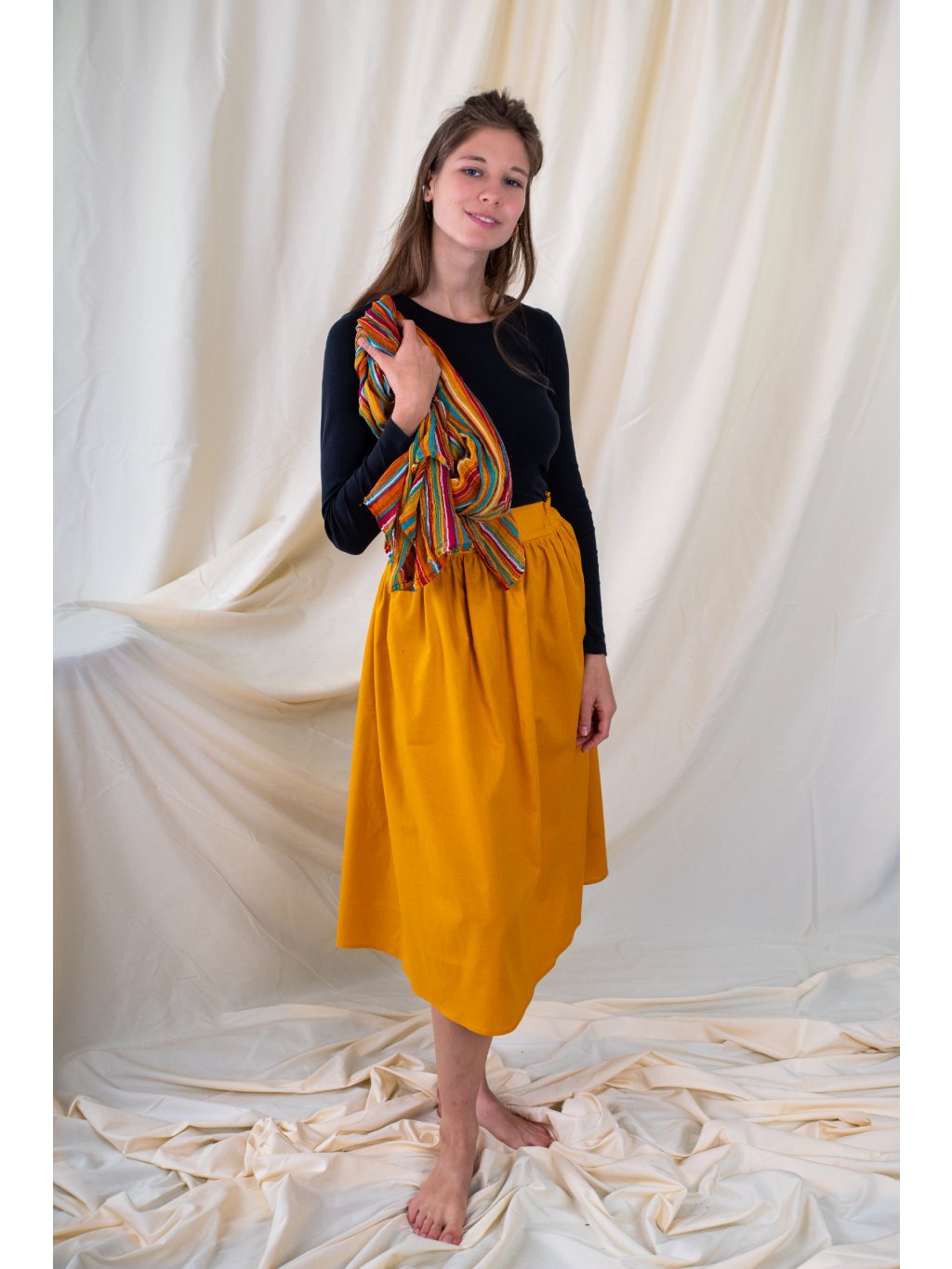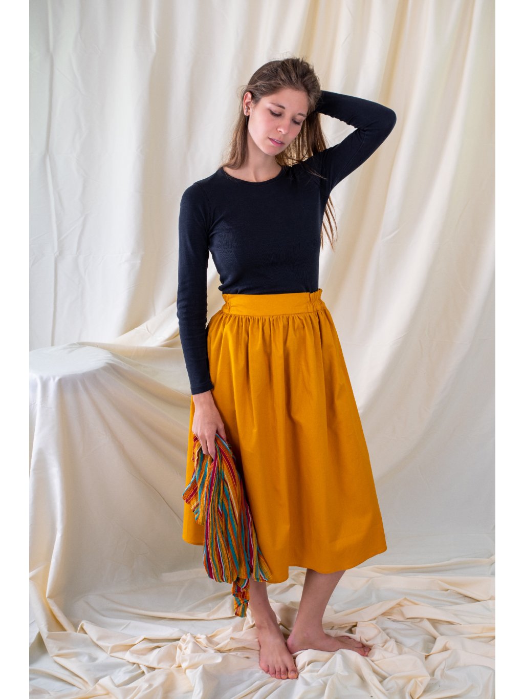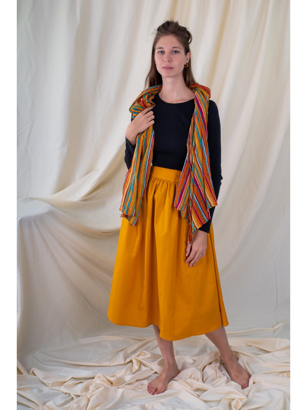 Originální sukně ušitá z kvalitní bavlny hořčicové barvy.