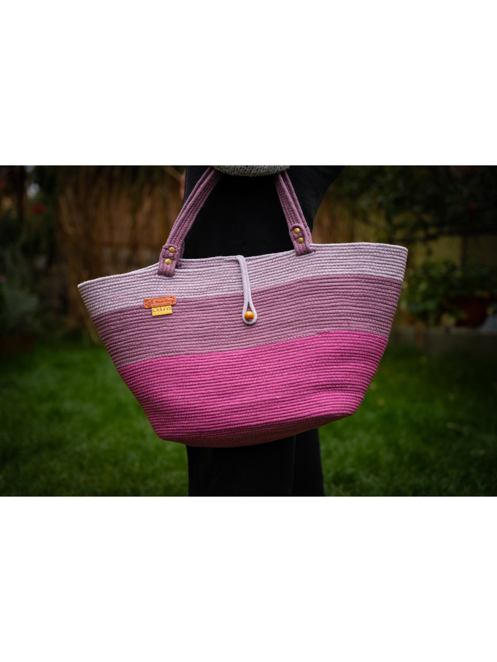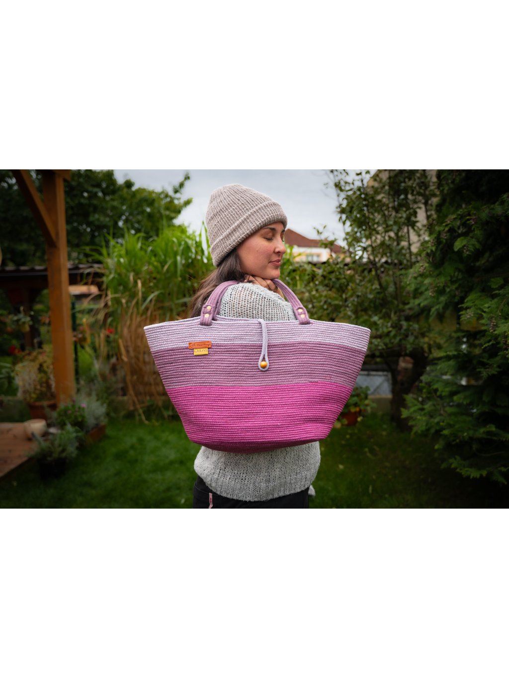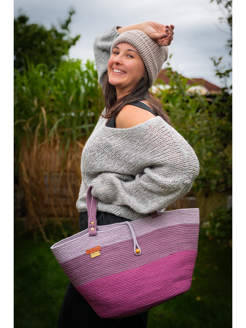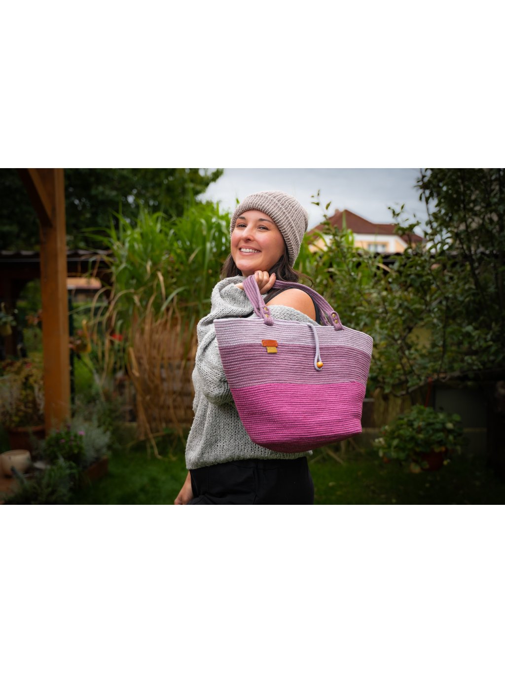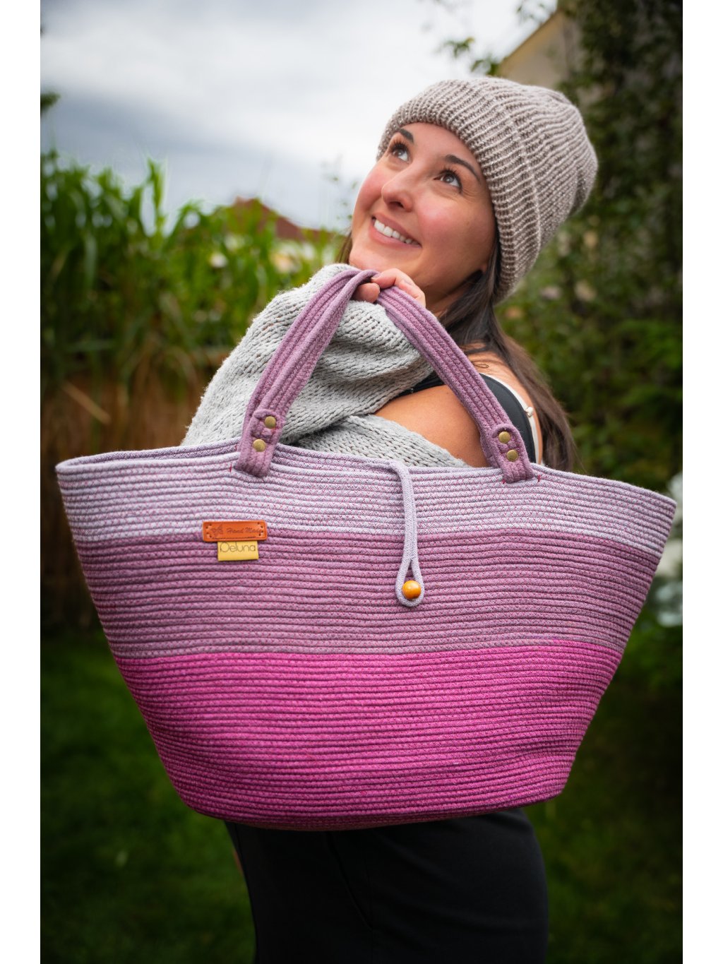Tato praktická kabelka Jitřenka je ručně ušitá z recyklované bavlněné šňůrky na šicím stroji pomocí cik cak stehu, který zajišťuje vysokou pružnost, pevnost a odolnost proti třepení okrajů, zabraňuje roztrhání švů a umožňuje flexibilitu pro pohodlné nošení, což ji činí ideální pro každodenní použití. Recyklovaná bavlněná šňůrka přináší mnoho výhod – je ekologicky šetrná, protože snižuje množství textilního odpadu, šetří vodu, energii a přírodní zdroje oproti nové bavlně, a zároveň je měkká, prodyšná, lehká, hypoalergenní a odolná, ideální pro citlivou pokožku a aktivní životní styl. Do ní pohodlně uschováte různé věci, jako je ručník, opalovací krém nebo plážové potřeby, nebo ji využijete na menší nákup v obchodě – její prostornost a robustní design ji činí univerzálním společníkem pro dovolenou u moře či běžné pochůzky. Fotografie ukazuje vínovo-fialovou variantu, což je hluboký, bohatý odstín inspirovaný vínem s více modrými tóny než červenými, který působí energicky a elegantně. Barvy lze upravit dle vašich požadavků, pokud budou příslušné šňůrky skladem, což umožňuje personalizaci a přizpůsobení vašemu stylu. Tento originální doplněk není jen funkční, ale i stylový – jeho přirozená textura a ekologický původ podtrhnou vaši individualitu a ohleduplnost k životnímu prostředí.