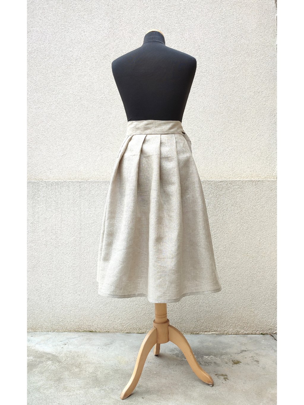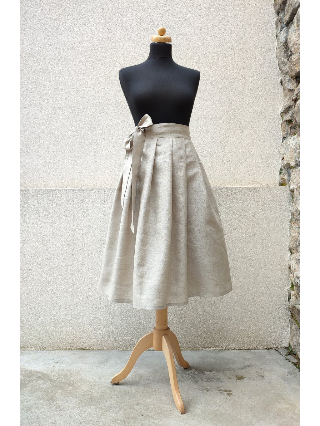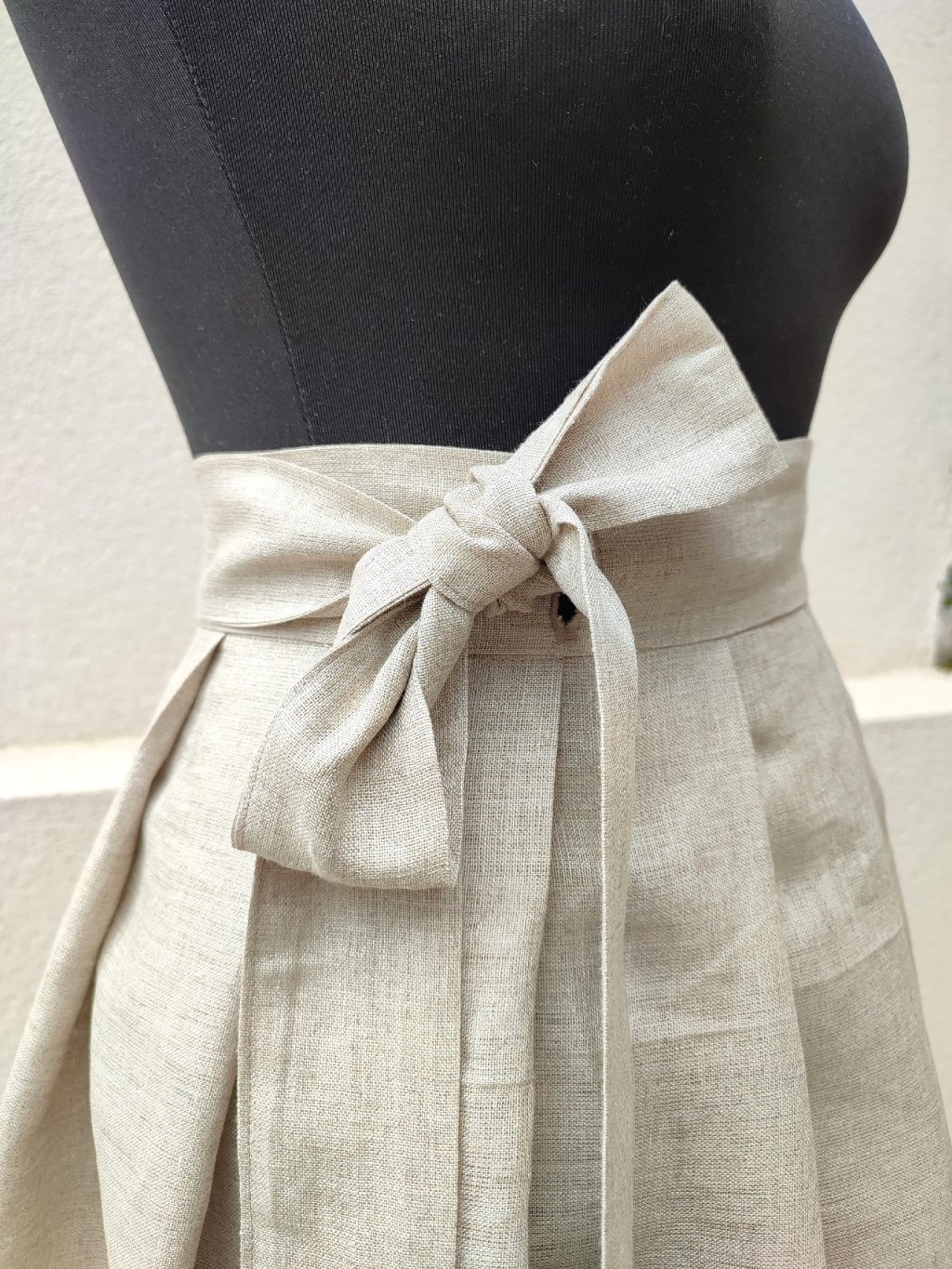 Zavinovací sukně ušitá ze 100% lnu v přírodní barvě.