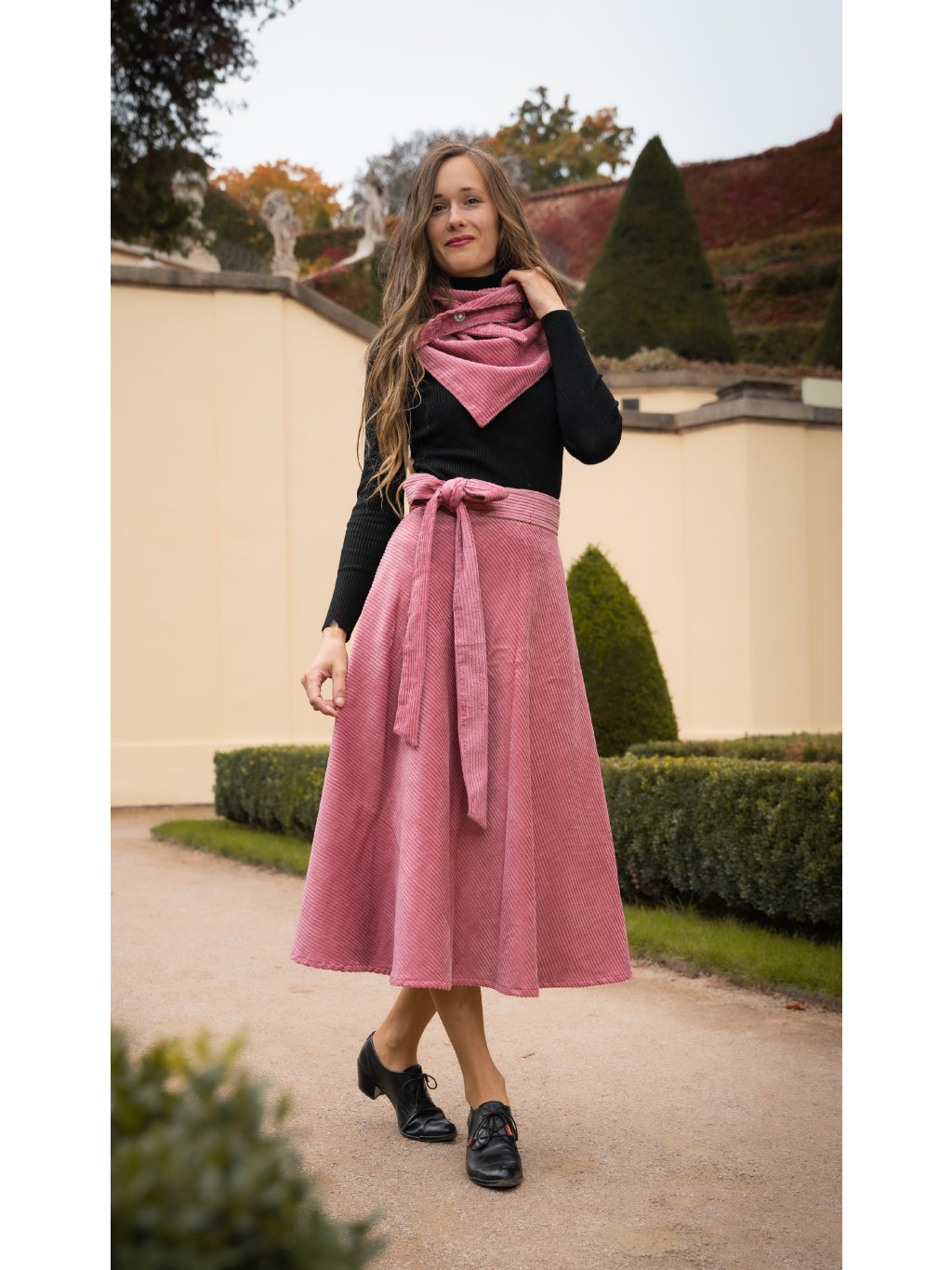 Dopřejte svému šatníku jemnost a eleganci s naší delší manšestrovou sukní ve starorůžové barvě.