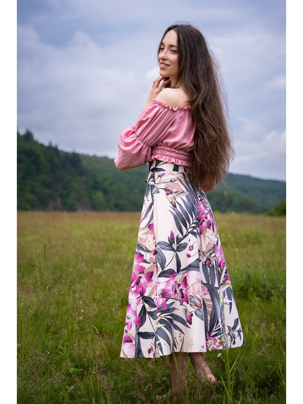 Půlkolová midi sukně - růžová paradise