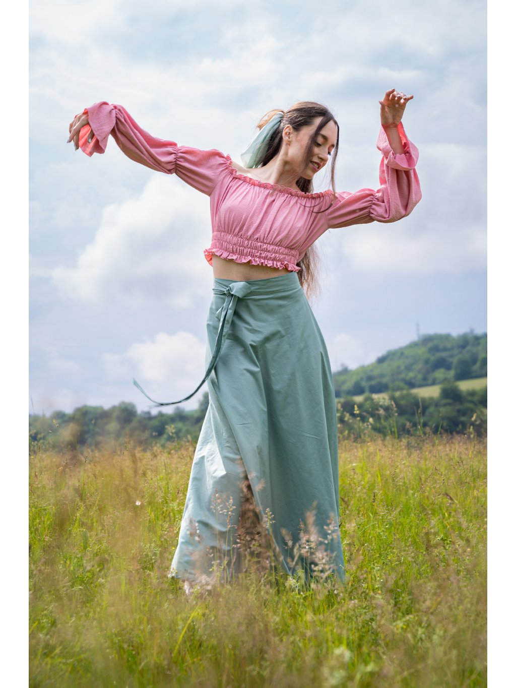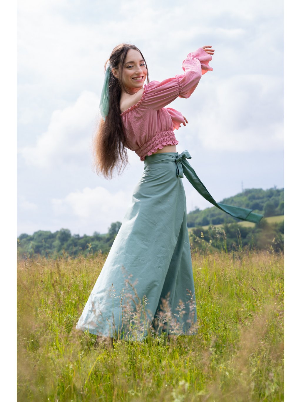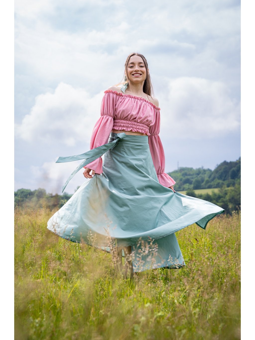 💬 Sukně je šitá výhradně na zakázku. Při objednávce prosím uveďte obvod pasu a požadovanou délku, aby kousek padl přesně Vaší postavě.