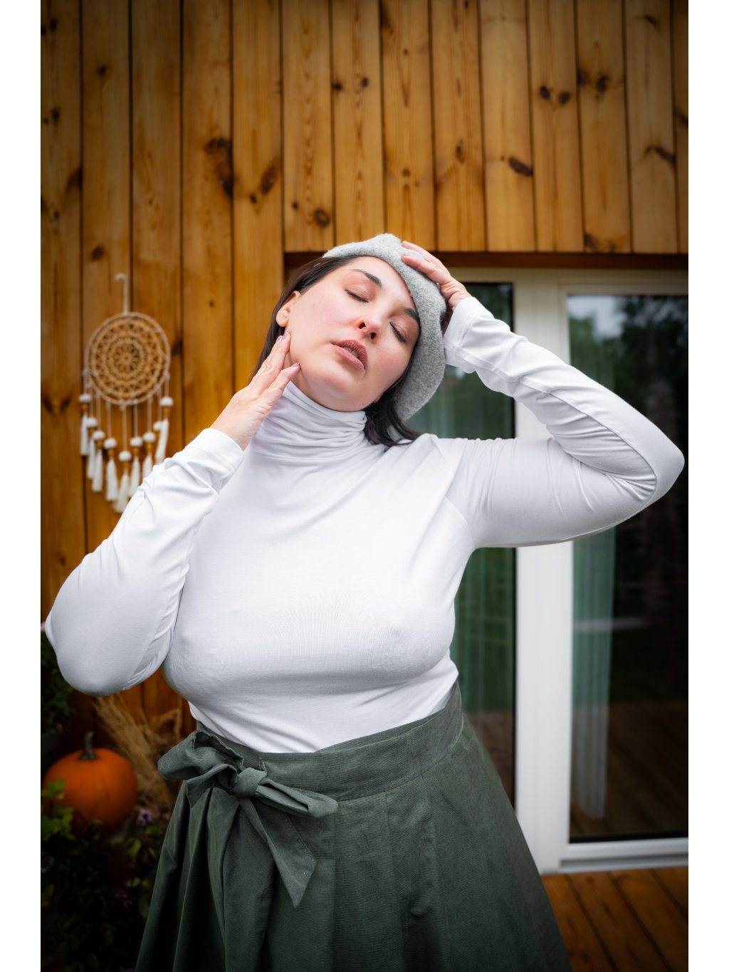Bílý rolák Jenda je vyroben z měkké a hebké bambusové viskózy (95%) s příměsí elastanu (5%), díky čemuž je dokonale pružný, pohodlný a přizpůsobí se vaší postavě.