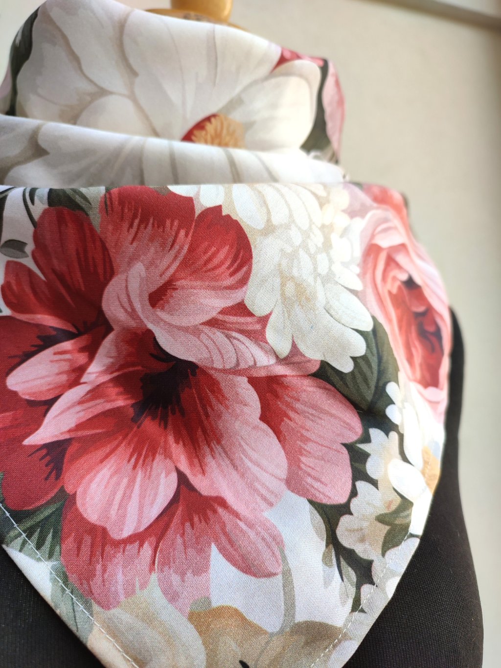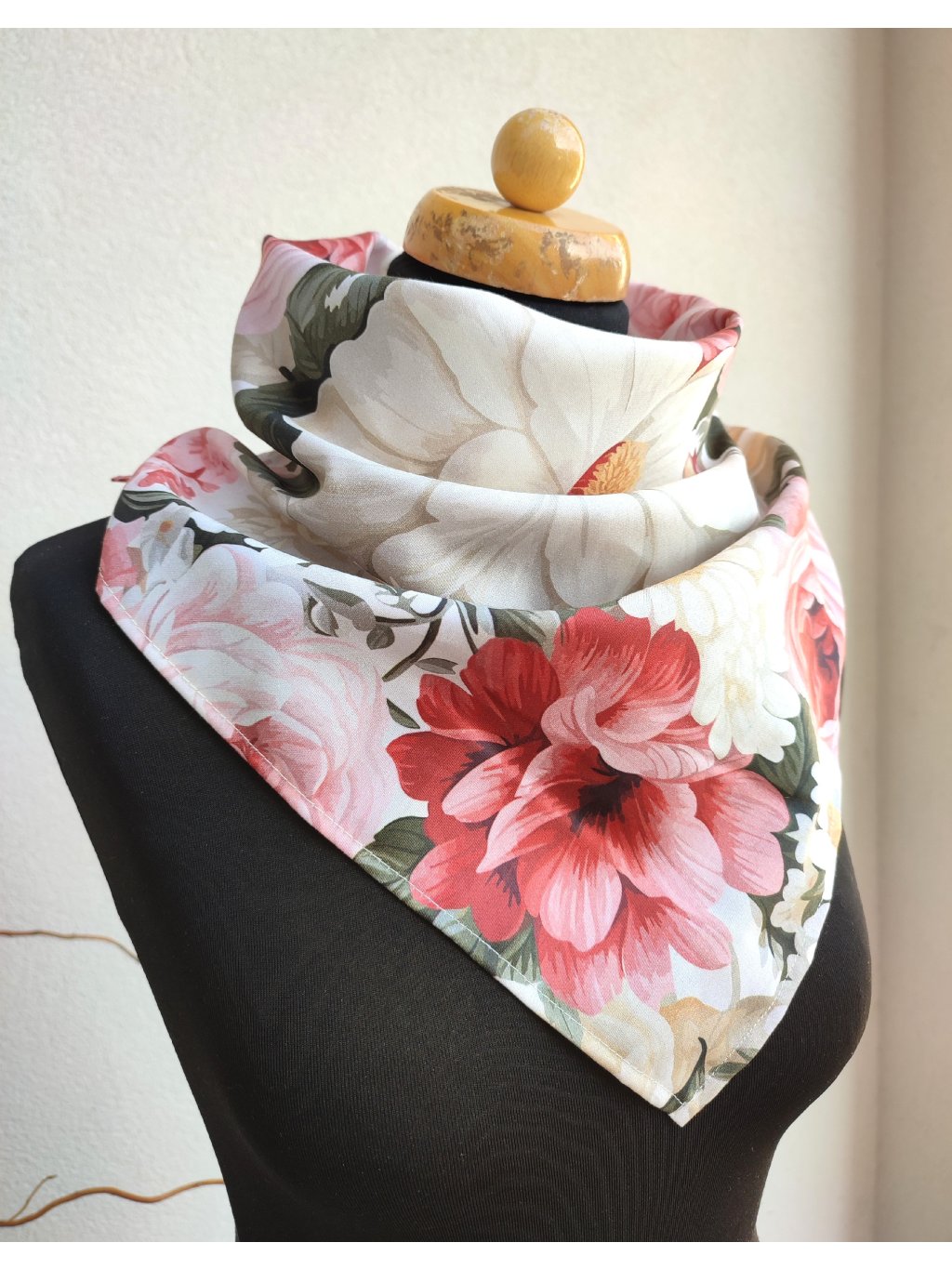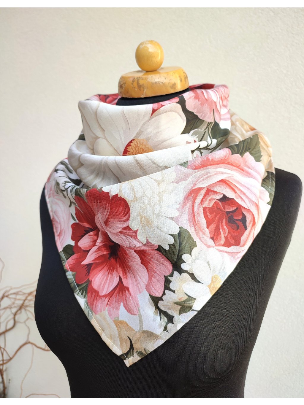 Šátek ušitý z heboučkého saténu, 100% bavlna, krásný tisk něžných pivoněk.