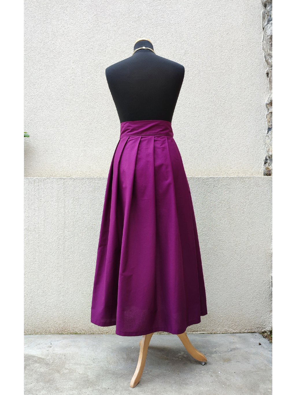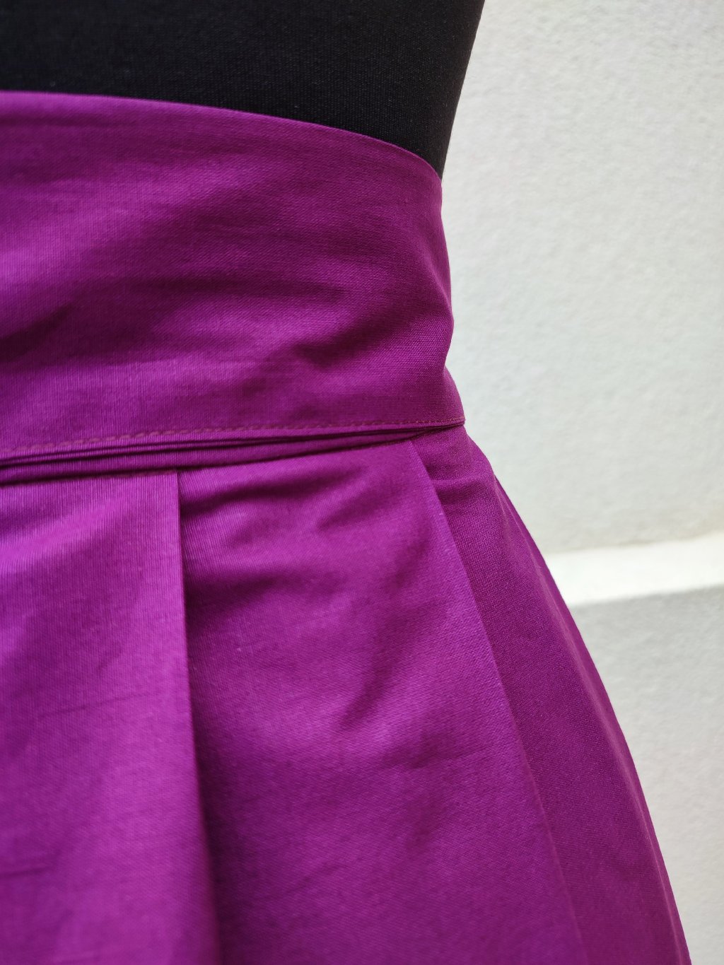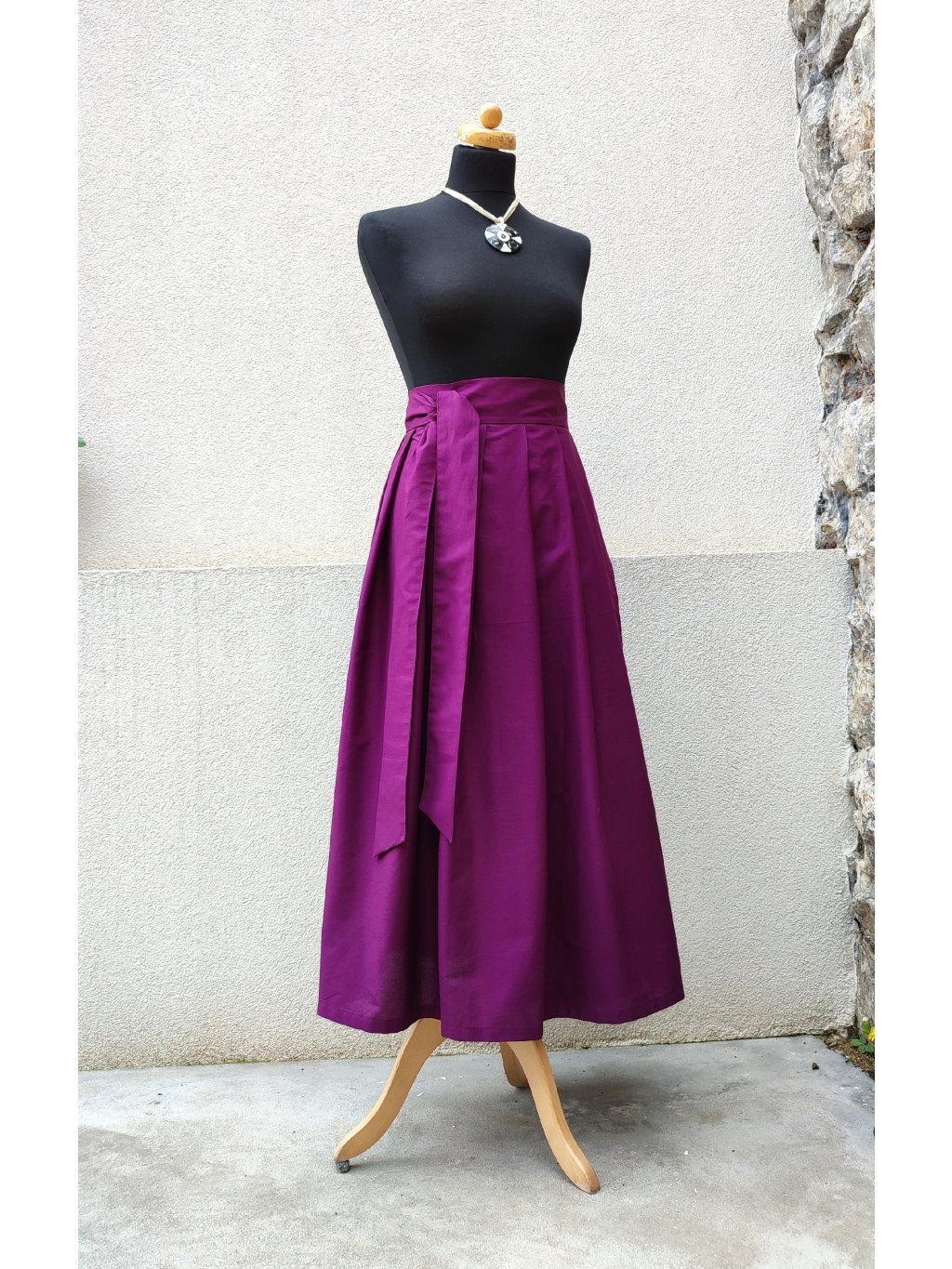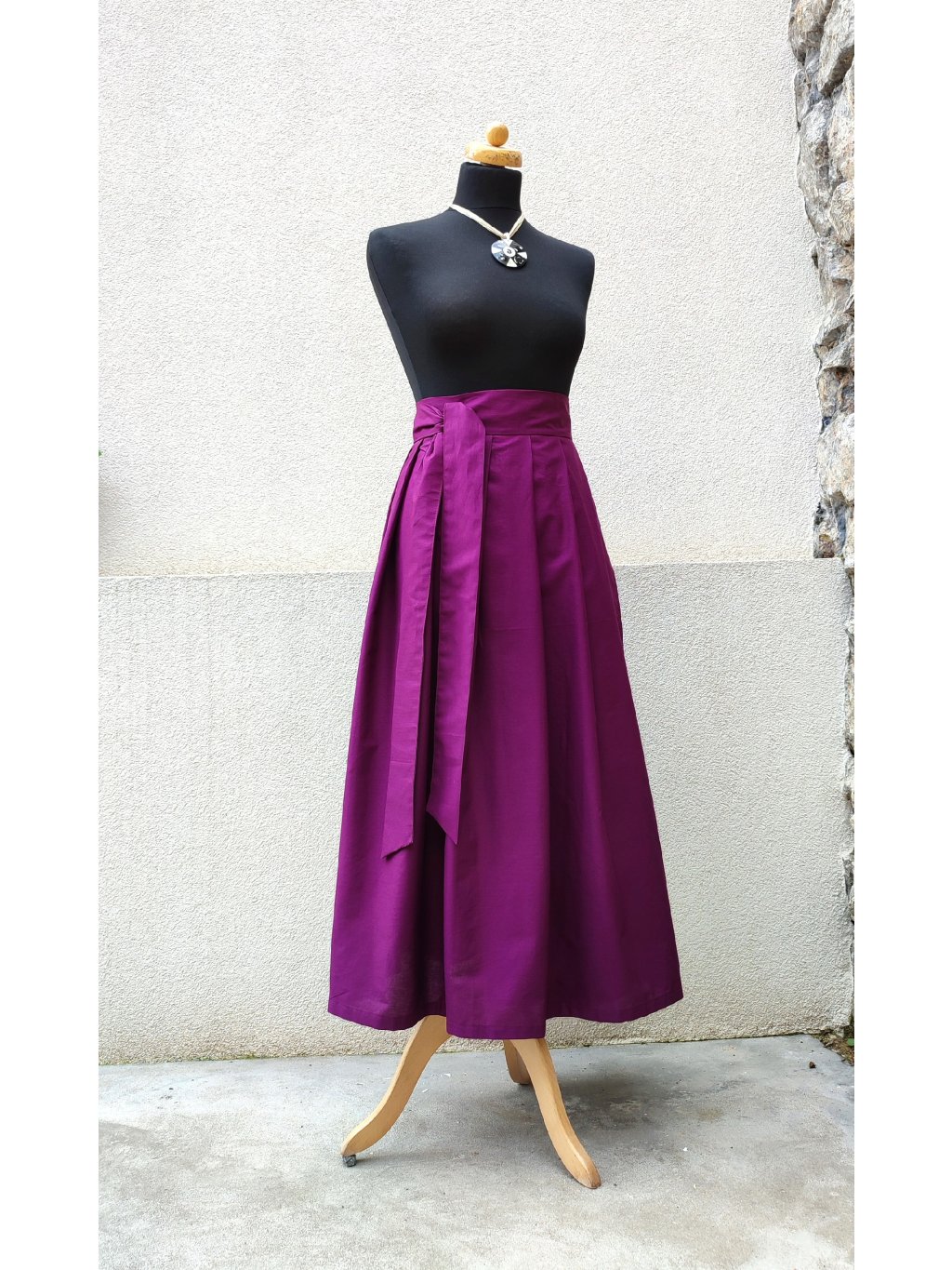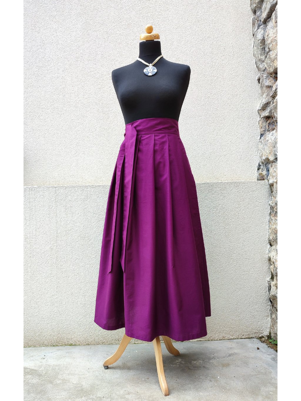 Zavinovací sukénka ušitá z jemné bavlny, sytá šeříková barva.