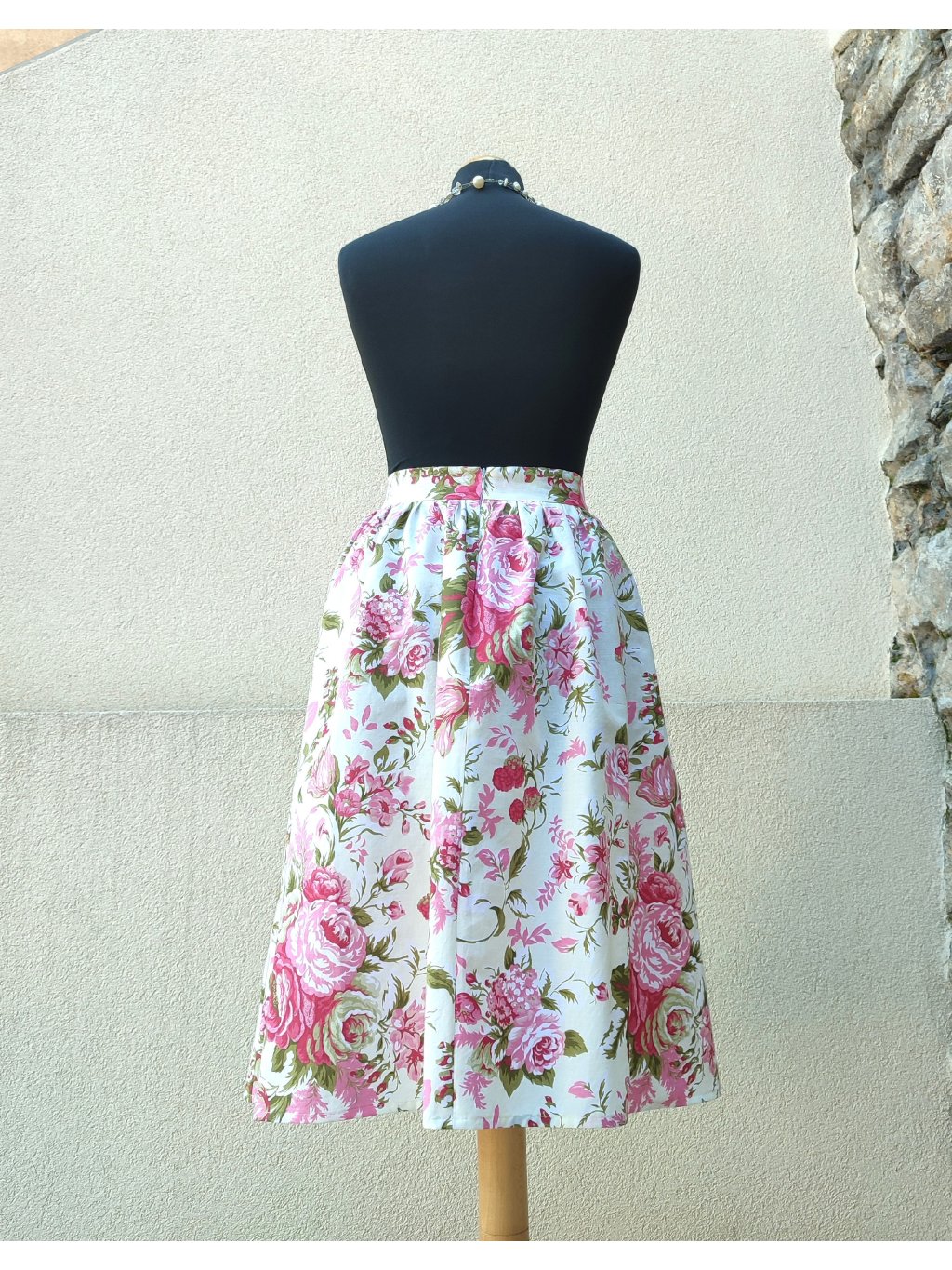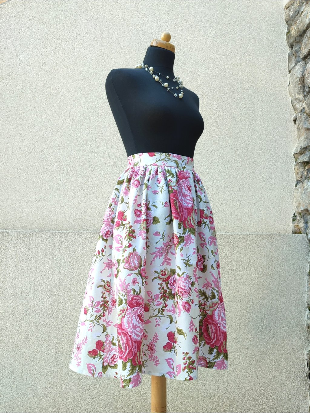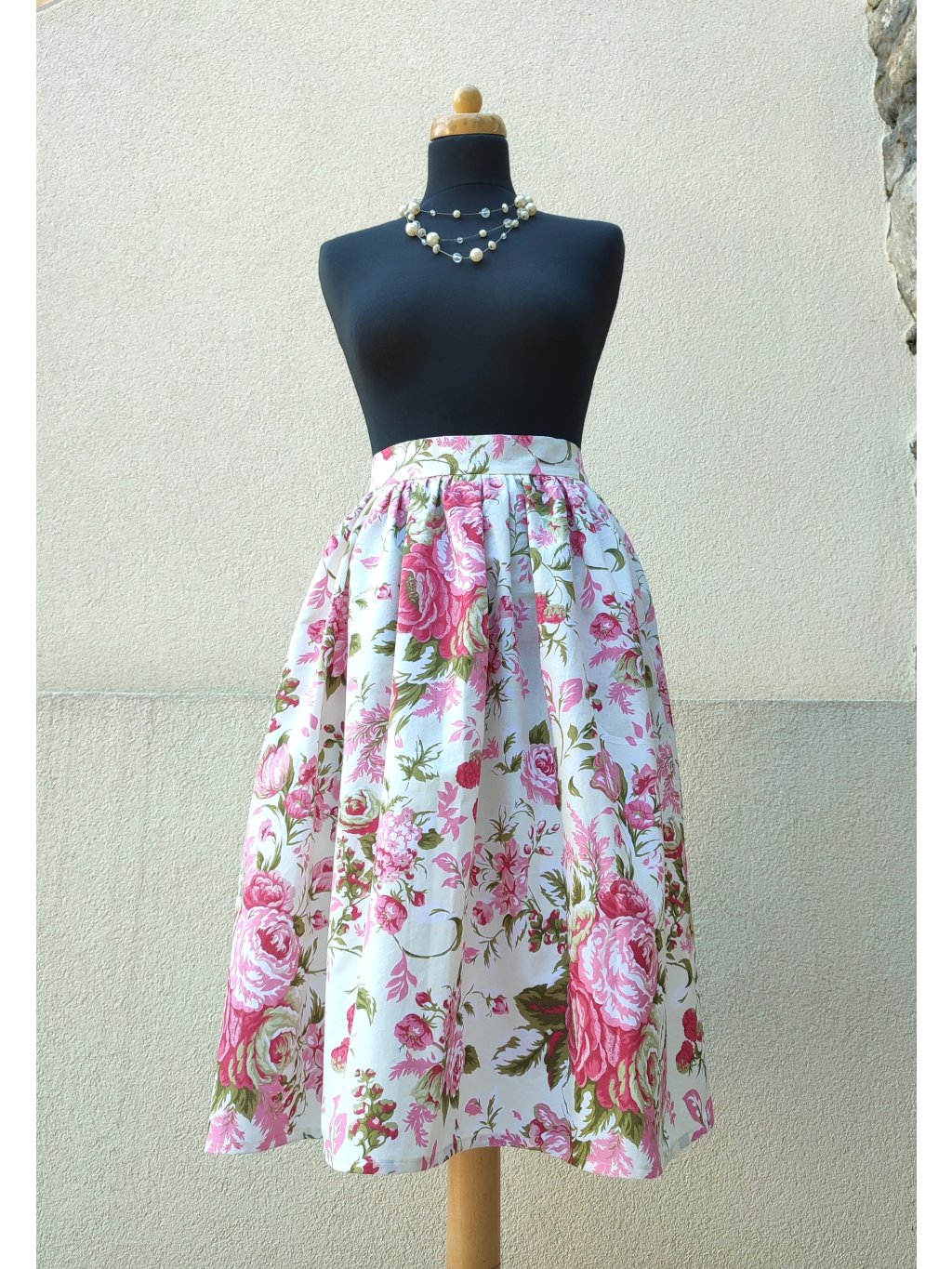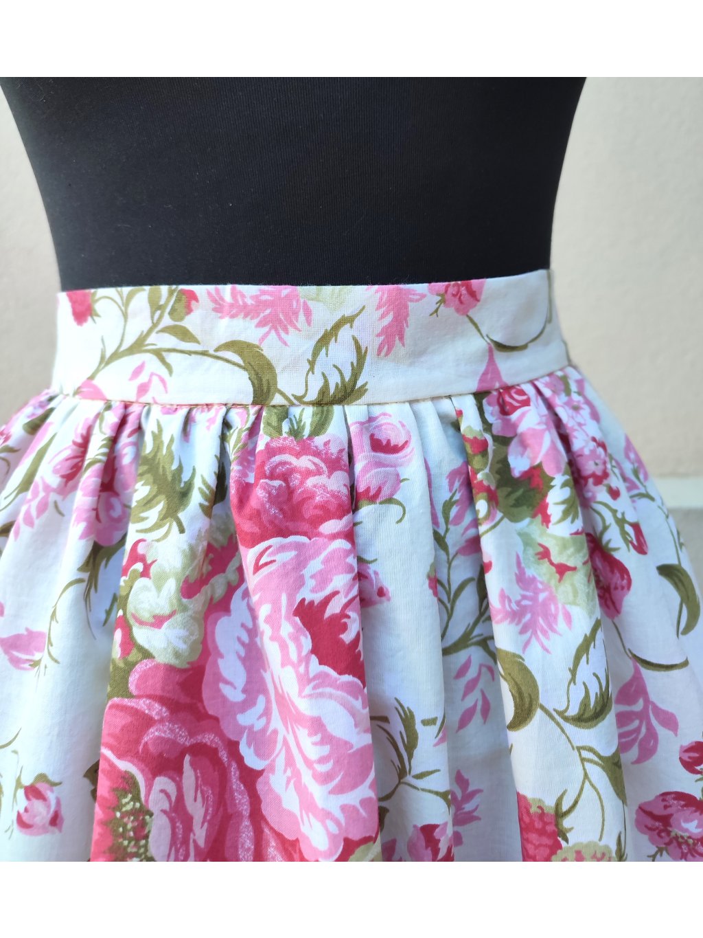 Něžná sukně ušitá ze 100% bavlny s potiskem něžných květů.