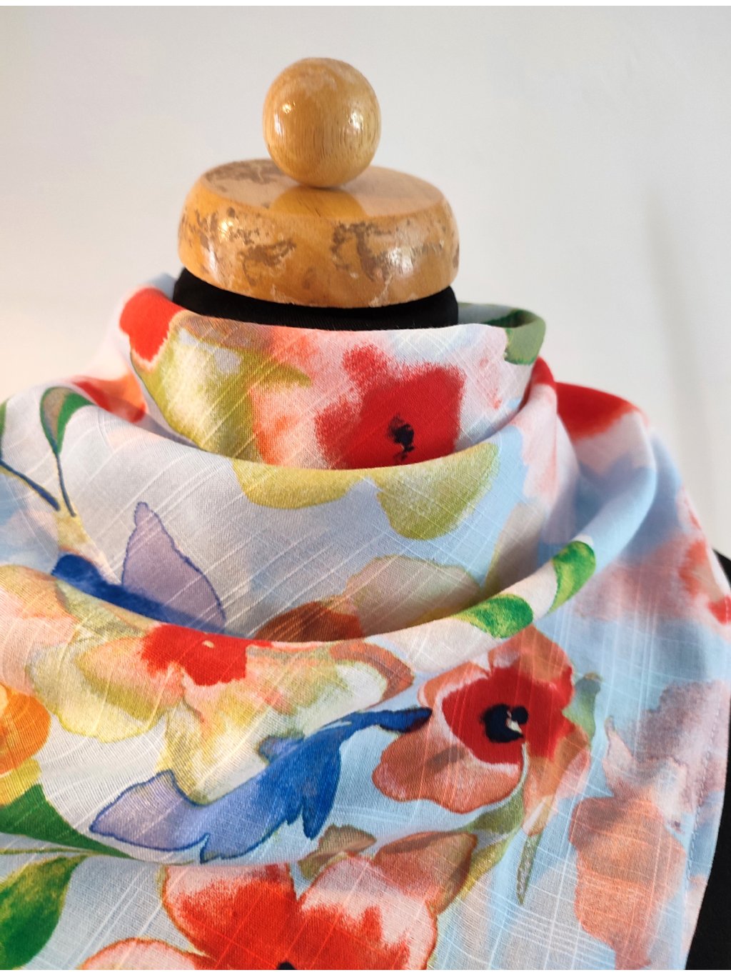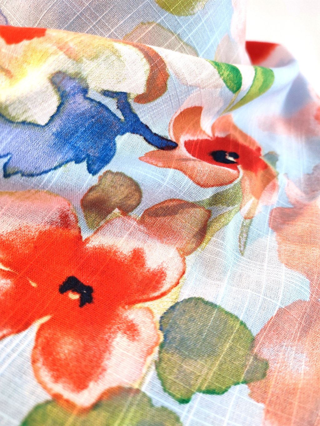 Šátek ušitý ze 100% hebké viskózy, akvarelový potisk květů.