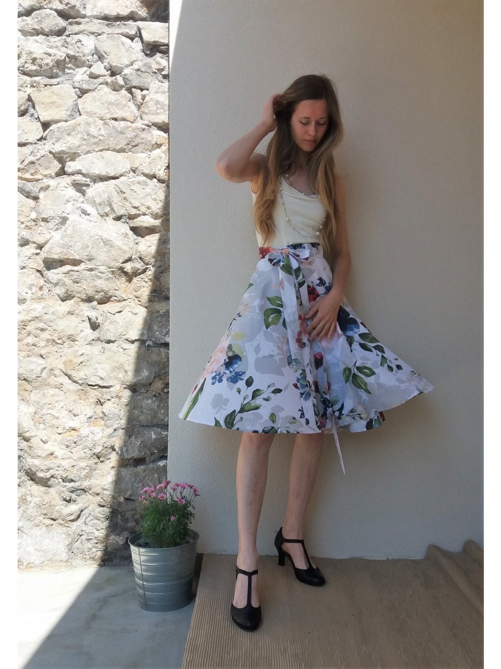Pohodlný střih, pouze oviňte kolem pasu a uvažte mašli či uzlík.