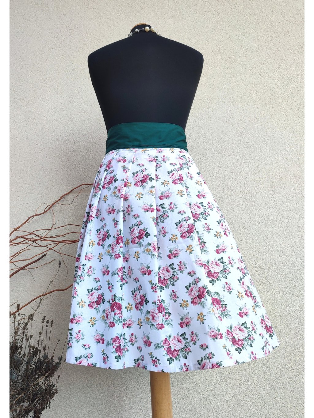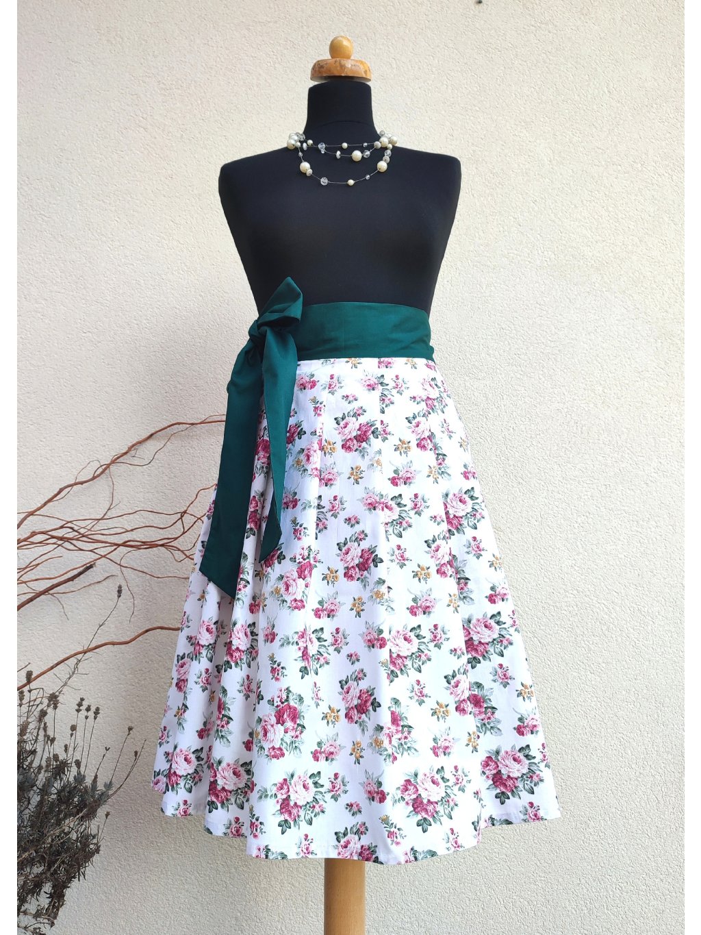 Zavinovací midi sukně se zeleným páskem